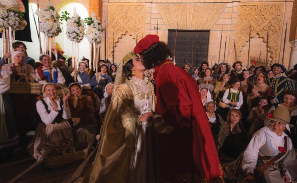 El Real Alcázar se convirtió en el escenario de una recreación teatral de la boda imperial, a cargo de la compañía Teatro Clásico de Sevilla. Con dos pases de 45 minutos, la representación permitió a los asistentes revivir el enlace que hace medio milenio unió a Carlos V e Isabel de Portugal.