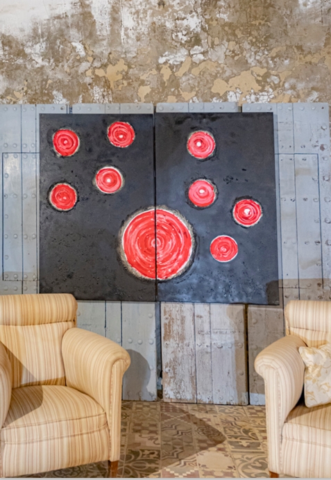 Del contraste entre el rojo, que representa la vida, la fuerza del amor, el calor del fuego y las puestas de sol, y el negro, que simboliza la oscuridad y el silencio. Para mí, el negro no es tristeza; la noche está llena de luces y de amores, un paisaje vibrante de vida. Como decía el filósofo indio Rabindranath Tagore: “No llores porque las lágrimas te impedirán ver las estrellas”.