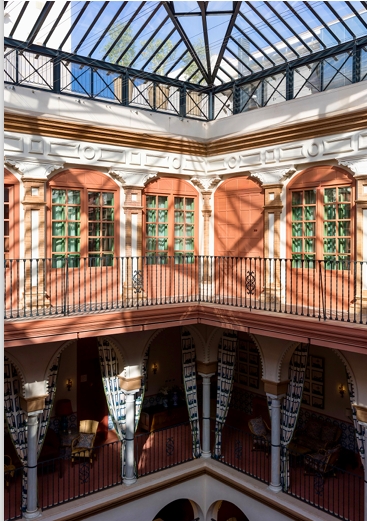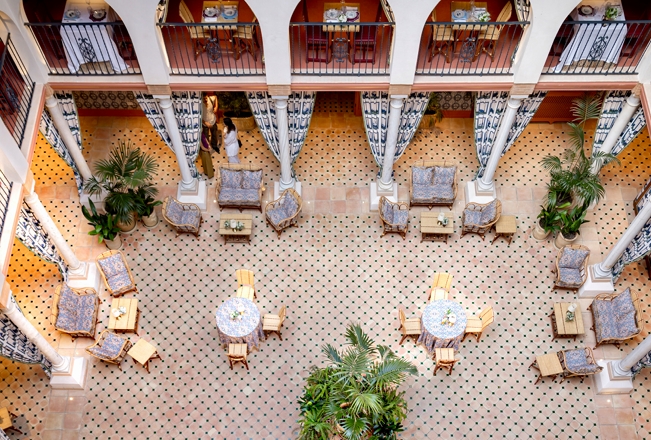 Además, todas las telas que visten el patio y las galerías son un homenaje al Guadalquivir y a ese puerto de Sevilla. Hemos utilizado mobiliario español, preservado los azulejos que estaban en buen estado y reproducido los que estaban deteriorados. El objetivo ha sido recuperar lo que el edificio tenía y llevarlo a ese momento dorado de Sevilla.