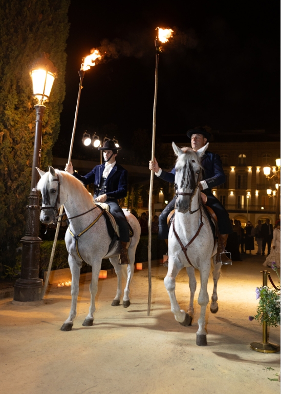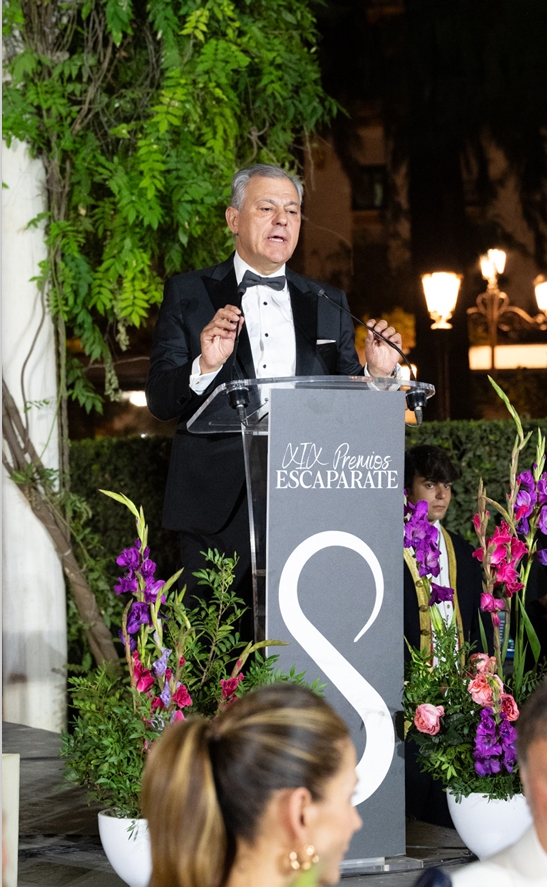 La entrega de los galardones de los XIX Premios Escaparate comenzó con la marcha real, interpretada por la Centuria Macarena, y un espectacular espectáculo ecuestre, cortesía de la firma Moodra, patrocinador principal. Miguel Primo de Rivera, conocido como Michi, dio la bienvenida como maestro de ceremonias, destacando el compromiso de la revista con el reconocimiento de la excelencia de la sociedad en cada aniversario.