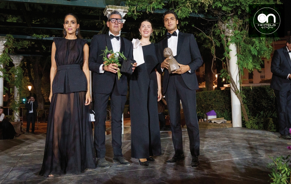 Para finalizar la gala, la Fundación ON recibió el Premio Escaparate de la Solidaridad 2025, por su labor en la inserción laboral de hombres y mujeres en riesgo de exclusión social. Patrocinado por Grupo Caballero, el premio fue recogido por don Jesús León Díaz, presidente de la Fundación ON, y doña María Teresa Pabón de Juan, directora de la Fundación ON Hotels, y entregado por doña María Caballero Blázquez, consejera de Grupo Caballero, acompañada de la influencer Invitada Ideal,