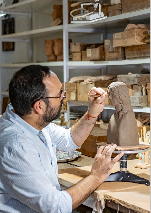 Los exvotos son, históricamente, esas ofrendas por gracia recibida a los dioses y santos que han poblado las civilizaciones del Mediterráneo a lo largo de los siglos. Para Luciano y Daniel, esta religiosidad popular es una fuente inagotable de inspiración, un manantial que nutre su arte y define su identidad. Sus piezas, ya sean figuras de santos o recipientes con forma de cabeza, son, a su manera, exvotos modernos: ofrendas estéticas a la belleza, la tradición y la capacidad de la mano humana para dar forma a lo intangible.
